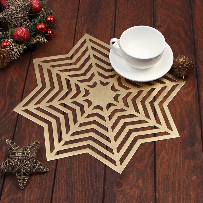 Салфетка новогодняя сервировочная Доляна Снежинка, цвет золото, d 38 см