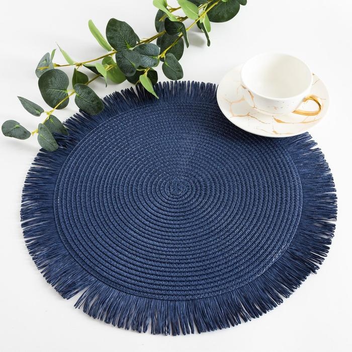 Салфетка сервировочная Доляна "Бохо", цв.синий, d 38 см