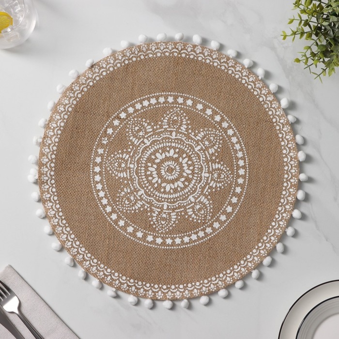 Салфетка сервировочная на стол Доляна «Африка», 38×38 см, цвет белый