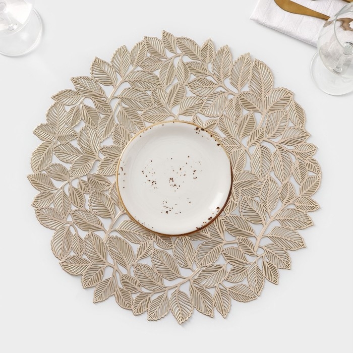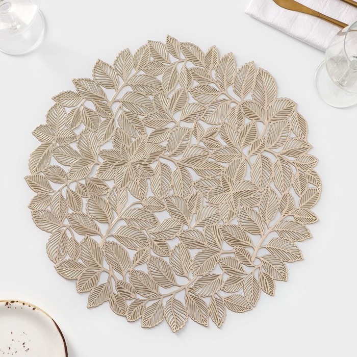 Салфетка сервировочная на стол Доляна «Листья», d=38 см, цвет золото