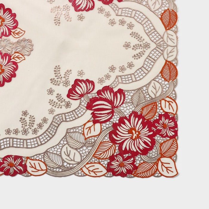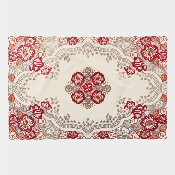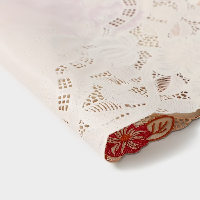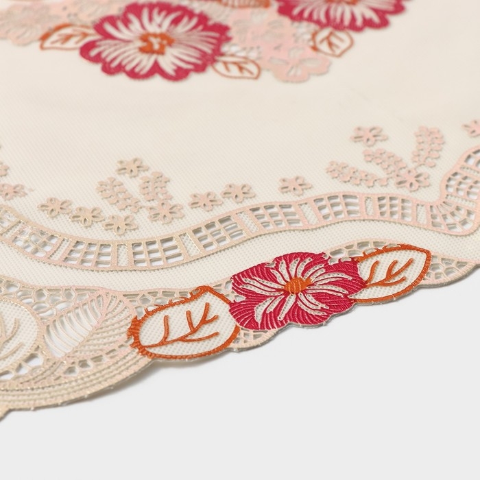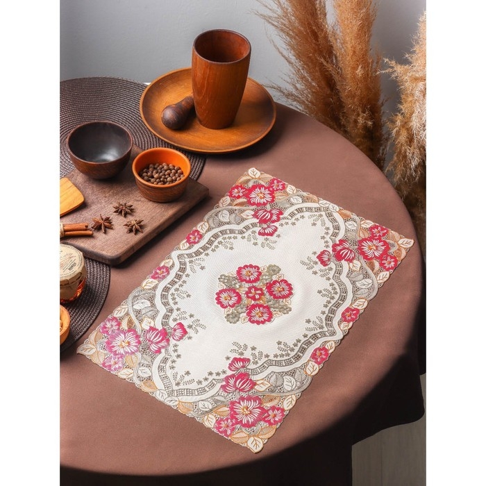 Салфетка сервировочная на стол «Незабудки», ажурная, 45×30 см, цвет металлик розово-оранжевый