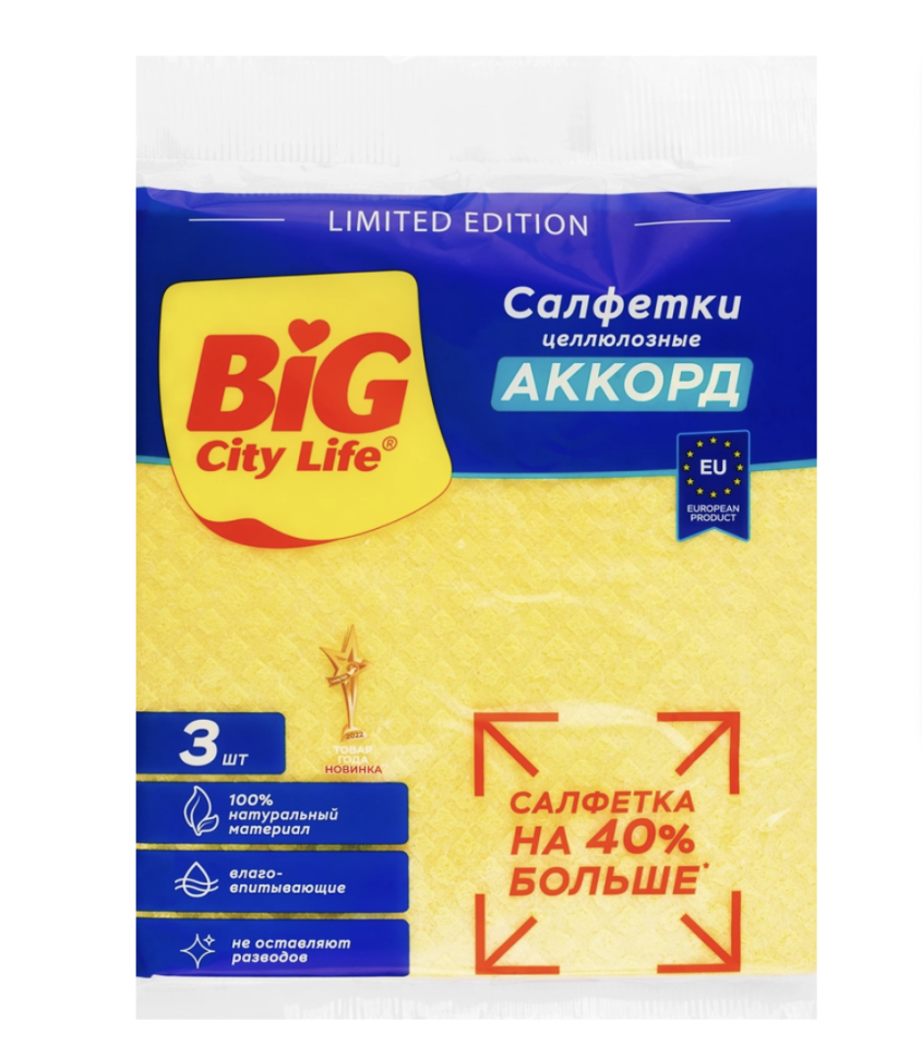 Салфетки BIG CITY LIFE Аккорд, целлюлозные, 3шт