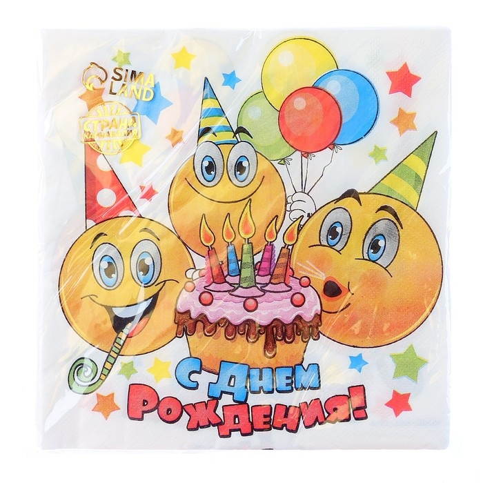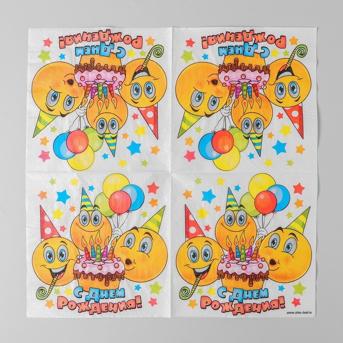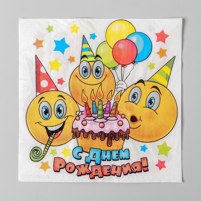 Салфетки бумажные двухслойные «С днём рождения», смайлики и торт, 33х33, 20 шт.