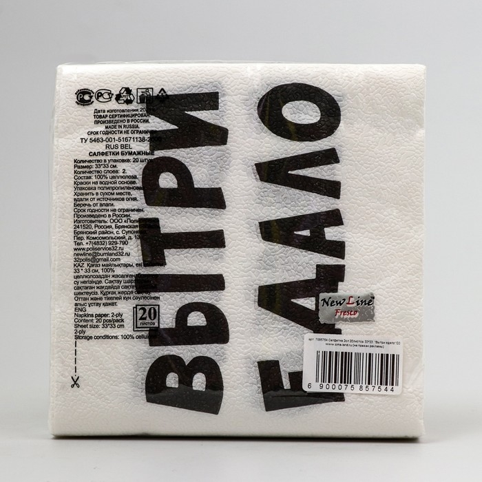 Салфетки бумажные New Line Fresco 33*33 см, 2 сл "ВыТрИ ЕдАлО" 20 шт