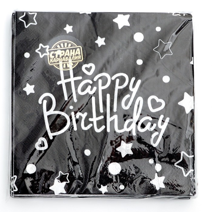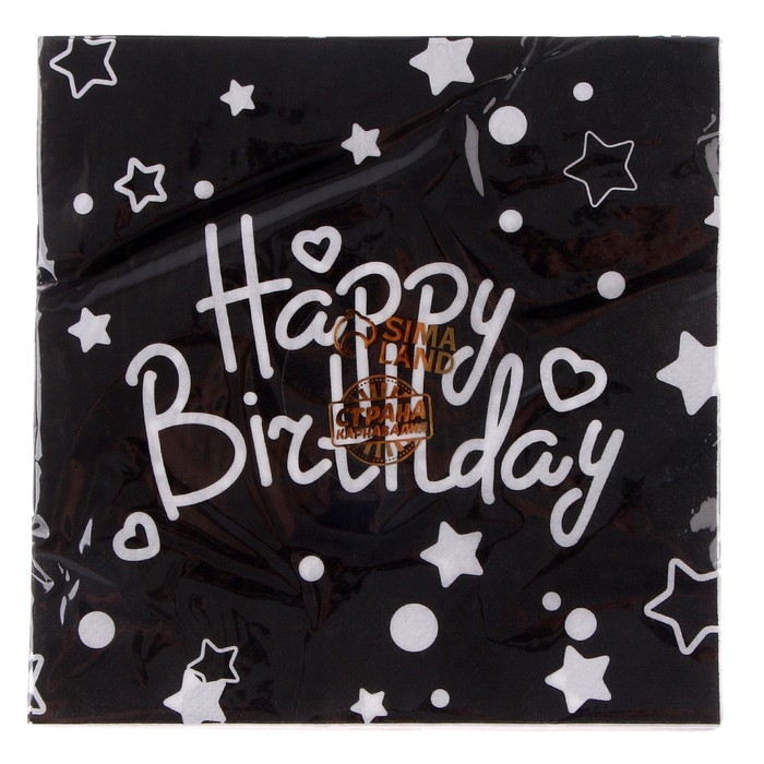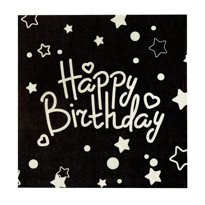 Салфетки бумажные «С Днём Рождения» 33×33 см, набор 20 шт., цвет чёрный