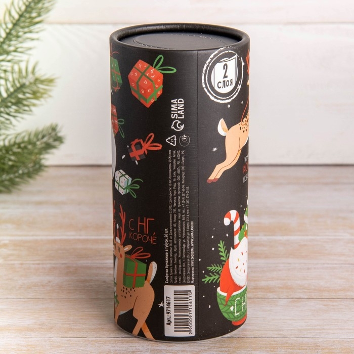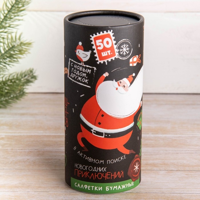 Салфетки бумажные в тубусе «Новый год! В поиске приключений», 50 шт, двухслойные