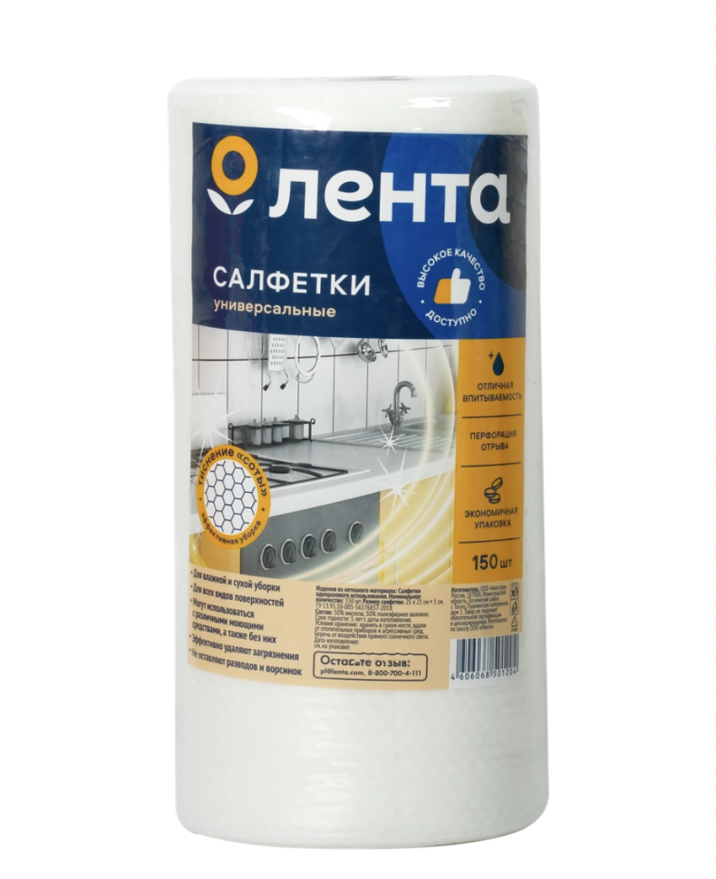 Салфетки ЛЕНТА 25х21см, соты, в рулоне, 150шт