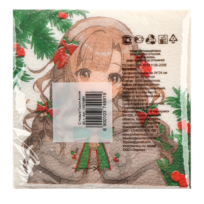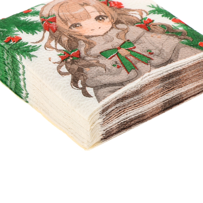 Салфетки новогодние бумажные «С Новым годом: аниме», однослойные, 24х24 см, 20 шт.