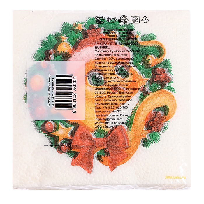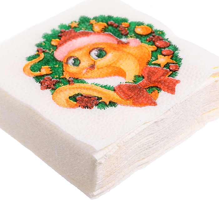 Салфетки новогодние бумажные «С Новым годом: венок», однослойные, 24х24 см, 20 шт.