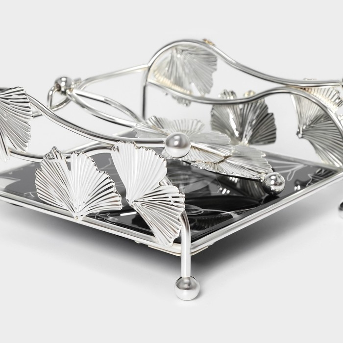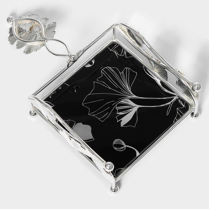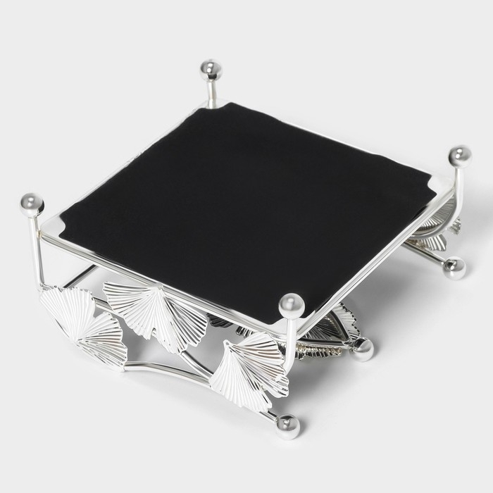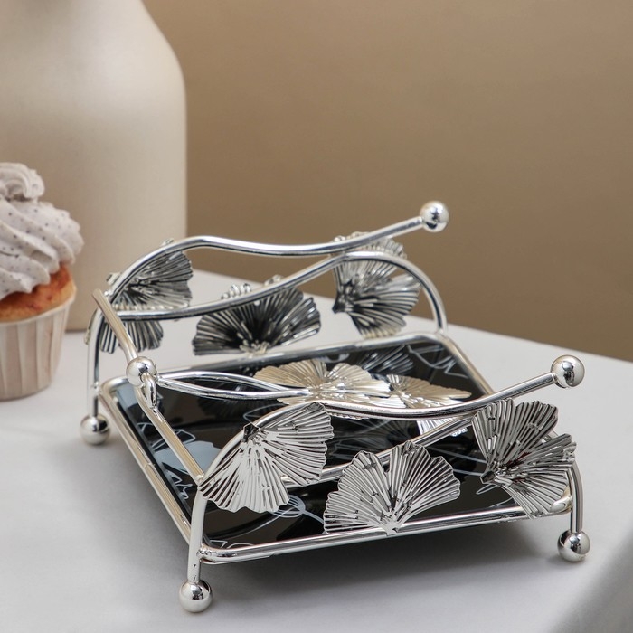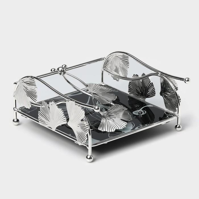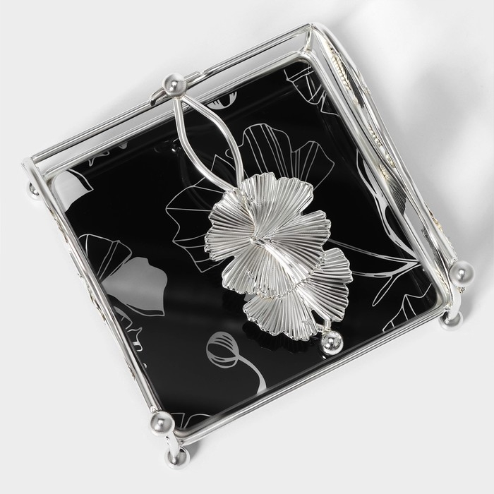 Салфетница «Цветы», 15×15×8,5 см, цвет серебряный