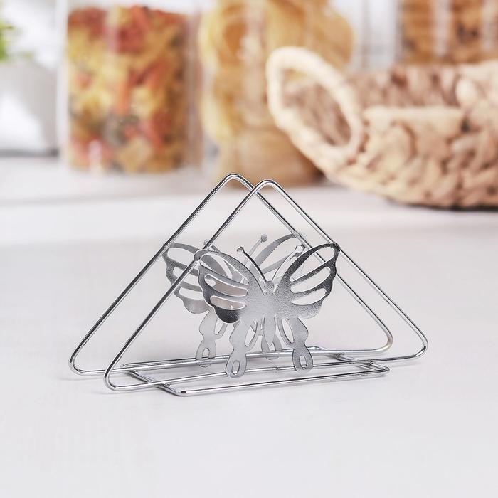 Салфетница Доляна «Бабочки», 6×14×8 см, цвет хром
