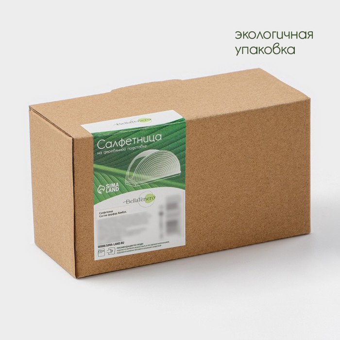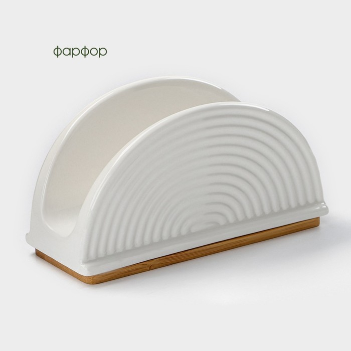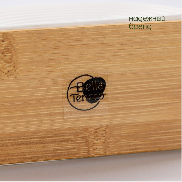 Салфетница фарфоровая на бамбуковой подставке BellaTenero, 14,5×6,5×8 см, цвет белый