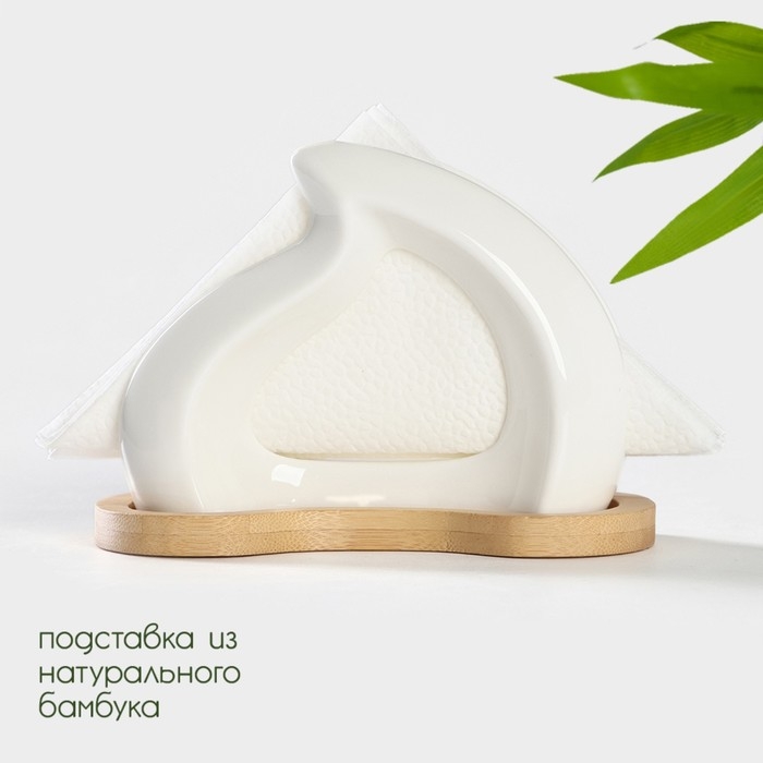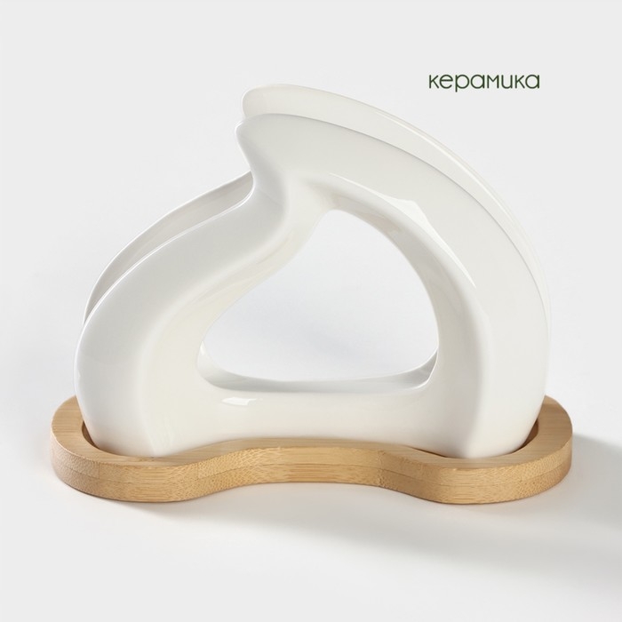 Салфетница керамическая на бамбуковой подставке BellaTenero, 14×7×10 см, цвет белый