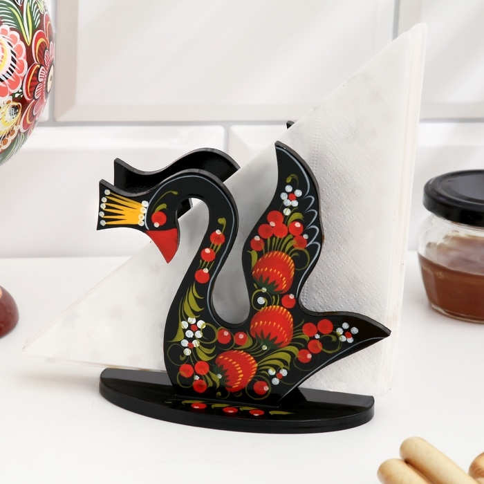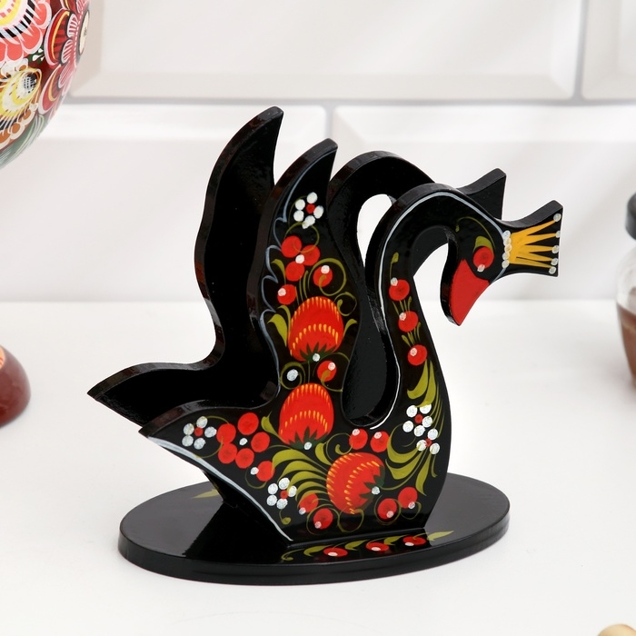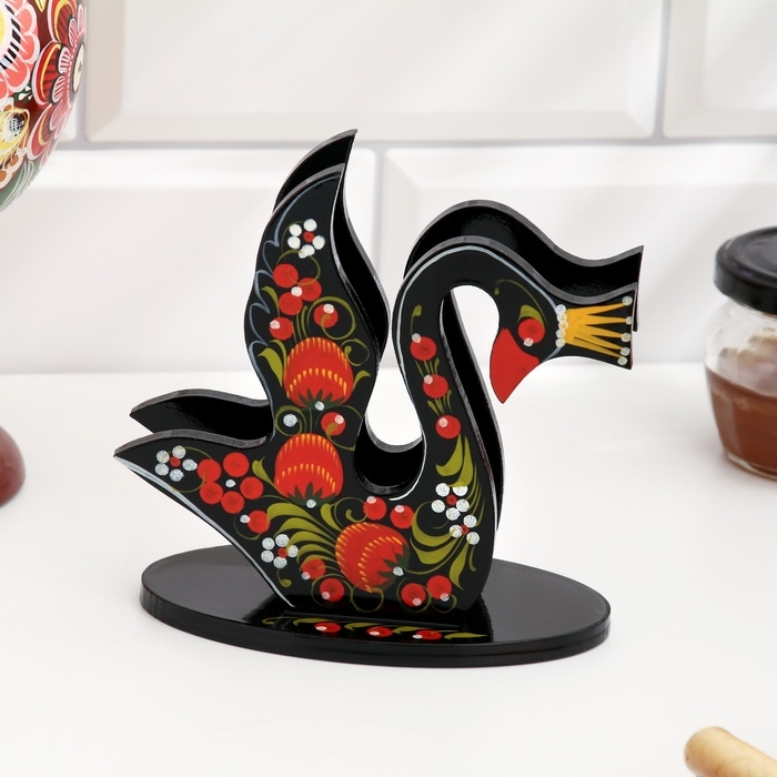 Салфетница «Лебедь», 7 х 12 см, хохлома