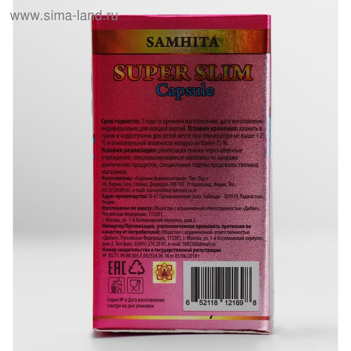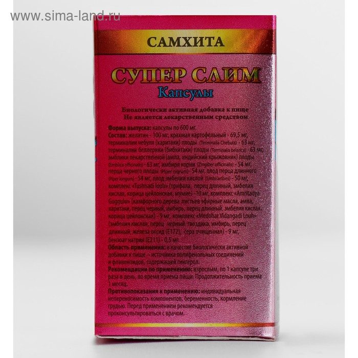 Самхита Супер Слим, благодаря уникальному сочетанию трав и аюрведической рецептуре, обеспечивает сжигание жира с пролонгированным эффектом, восстановление метаболизма, блокирование новых жировых отложений и восстановление упругости кожи, улучшает состояние ногтей и волос, работу сердца и ЖКТ, устраняет запоры, омолаживает организм в целом.