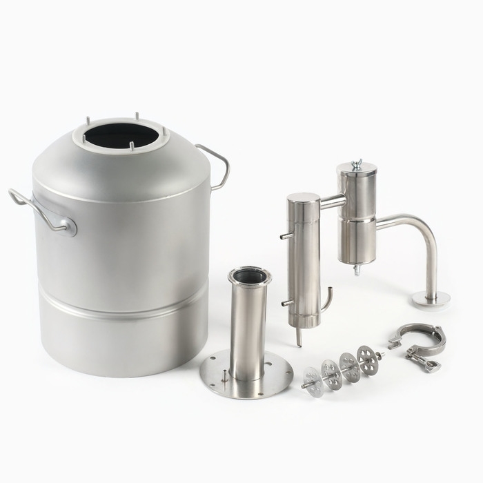 - качественный разборный сухопарник с ароматором на зиговке и краном в нижней части для слива сивушных масел в процессе перегонки;