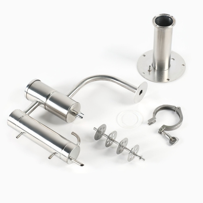 - кламповое соединение на 2 дюйма (можно установить дополнительную царгу, узел отбора, диоптр, дефлегматор);