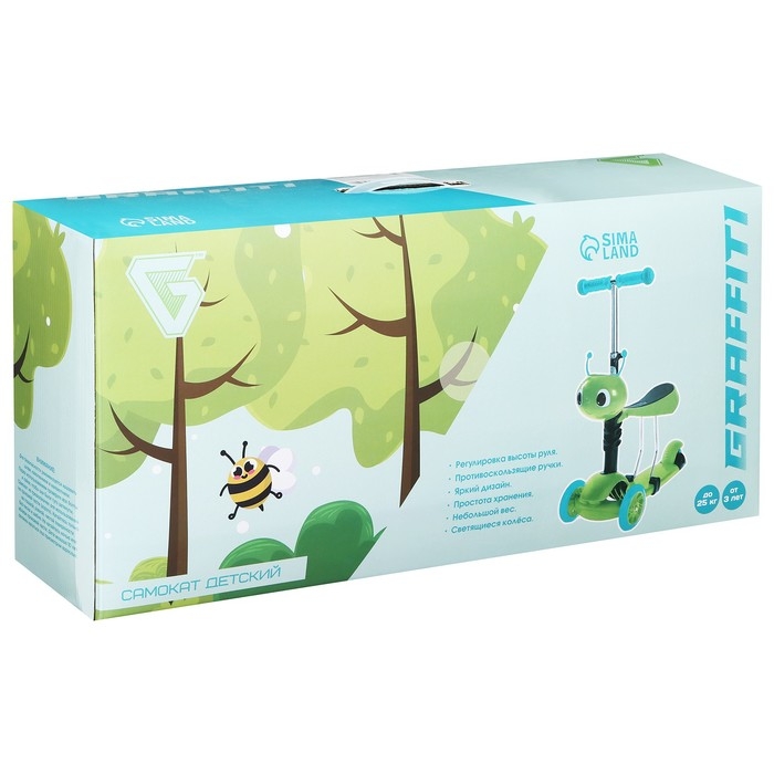 Самокат 2 в 1 GRAFFITI, с корзинкой, колёса PU 120/75 мм, цвет салатовый