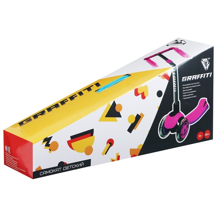 Самокат 2 в 1 с корзинкой GRAFFITI Kids, колёса PU 120/75 мм, цвет розовый