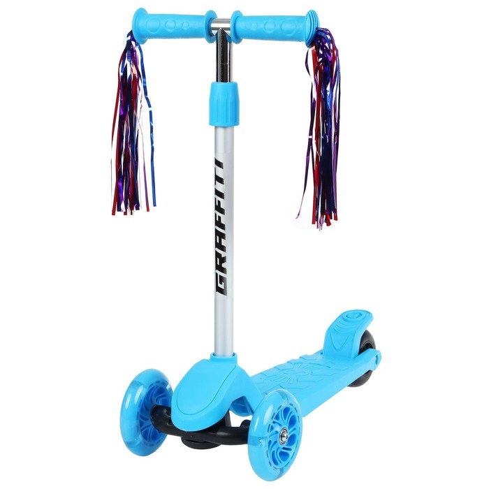 Самокат GRAFFITI, колёса световые PU 120/100 мм, цвет голубой