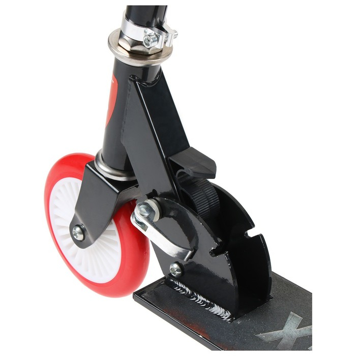 Рама складывается: рулевая стойка опускается к деке. В таком состоянии самокат занимает мало места. Платформа с шероховатым покрытием предотвращает скольжение ног. Высота руля регулируется и фиксируется в трёх положениях.