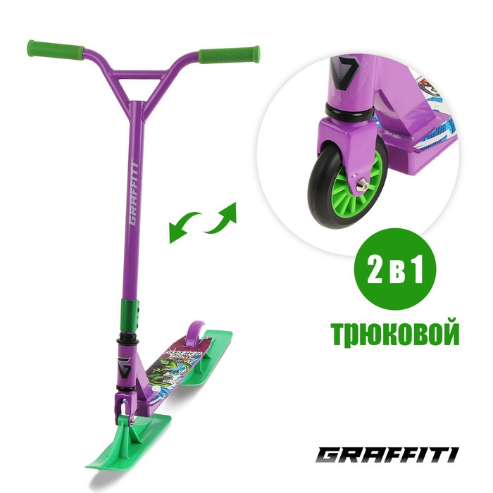 Самокат-снегокат 2 в 1 GRAFFITI, трюковой