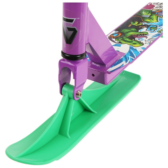 Детский самокат-снегокат — новая модель для летнего и зимнего активного отдыха. Конструкция представляет собой раму самоката, на которую устанавливаются лыжи или колёса. Трюковая рама выдерживает больший вес и более активную езду. Передняя лыжа управляется поворотом руля. Колёса можно установить в любой момент, для этого в комплекте есть всё необходимое.