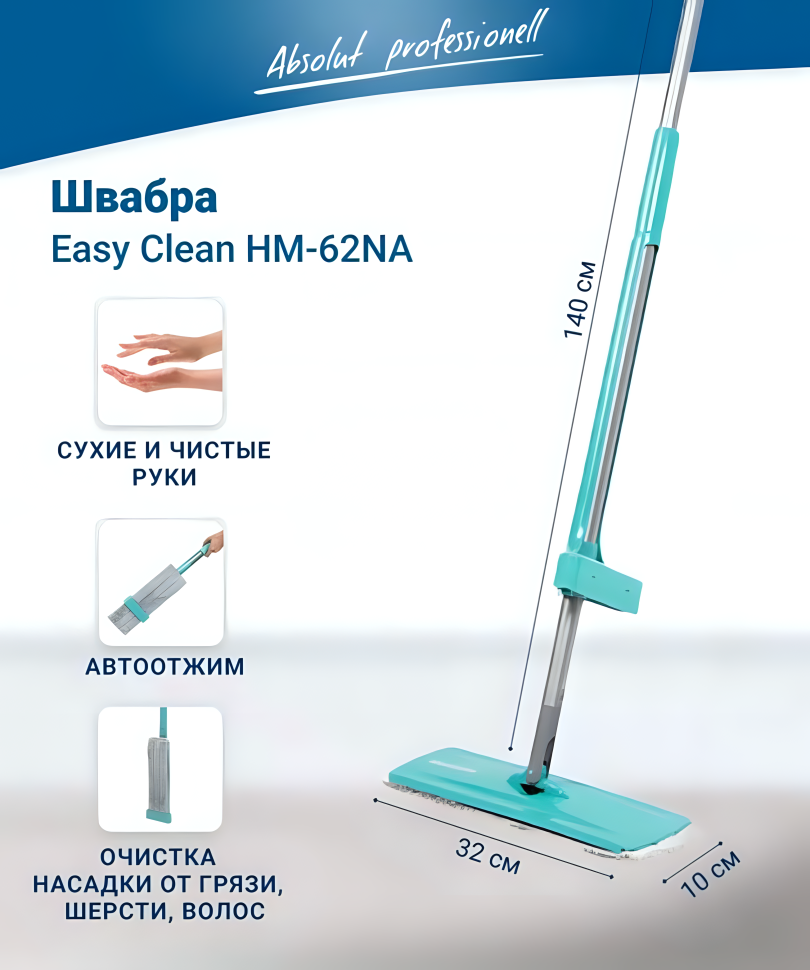 Самоотжимная швабра для мытья Easy Clean — это удобное решение для влажной уборки любых