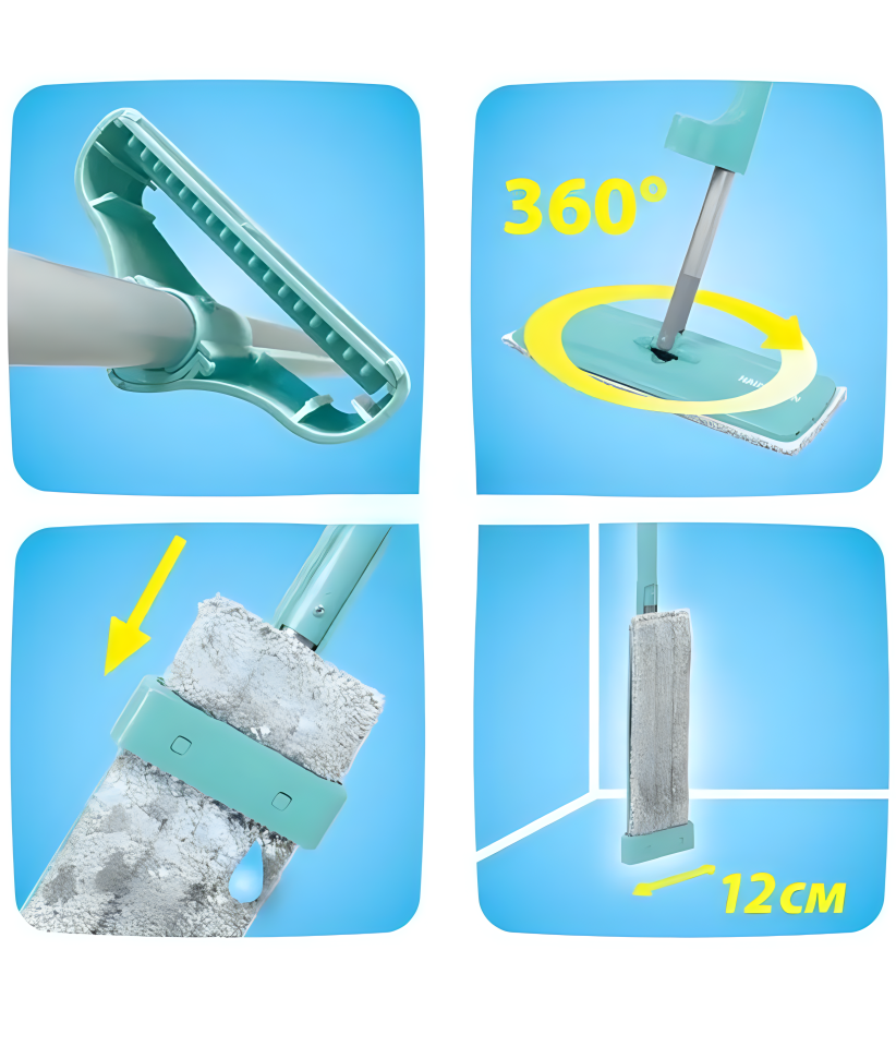 * Удобство хранения: швабра легко хранится вертикально, не занимая много места.