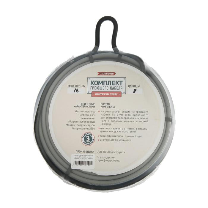 Саморегулирующийся греющий кабель SRL 16-2CR, 16 Вт/м, комплект, на трубу 8 м
