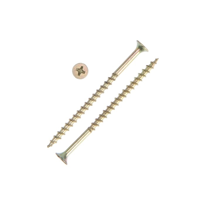 Изготовлен из стали с оцинкованным покрытием, имеет потайную головку с крестообразным шлицем. Для заворачивания используется шуруповерт с битой PH2 или отвертка с аналогичным наконечником. Предварительное сверление не требуется.