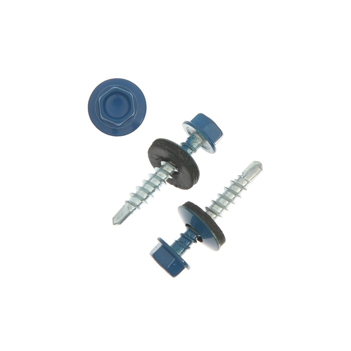 Саморезы кровельные с буром ТУНДРА 4,8x28 мм, синий 300 шт