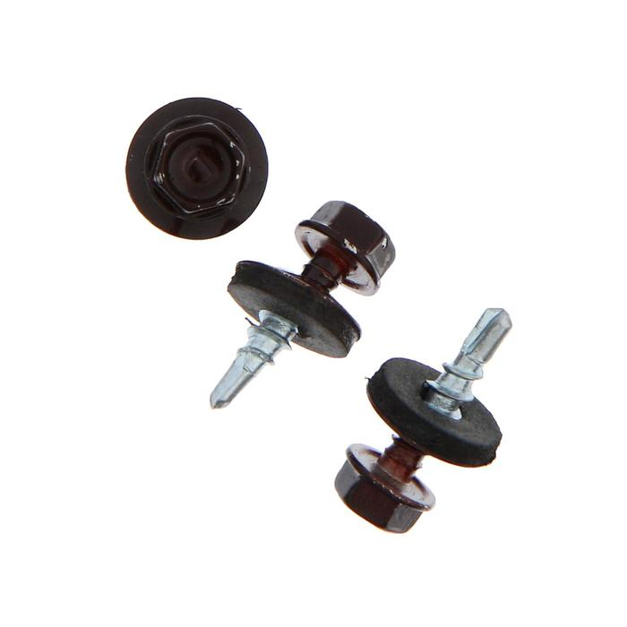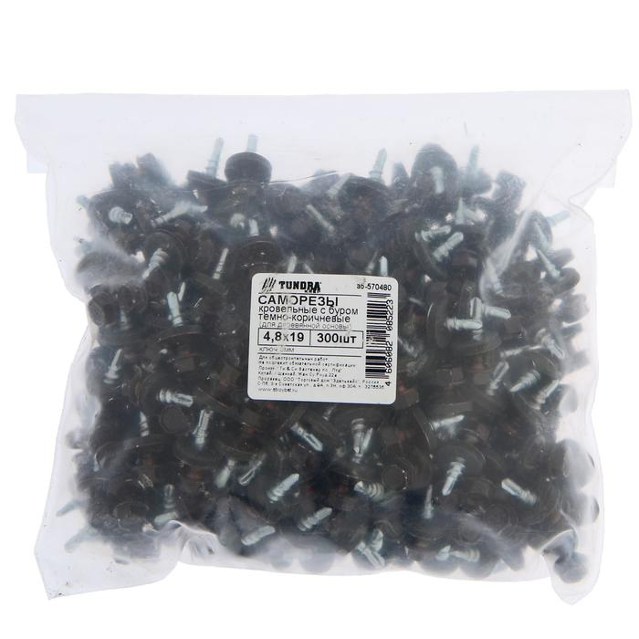 Саморезы кровельные ТУНДРА krep с буром 4.8x19 мм, темно-коричневый 300 шт.