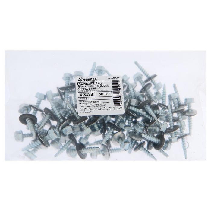 Саморезы кровельные ТУНДРА krep с буром 4.8x28 мм, цинк, 60 шт.