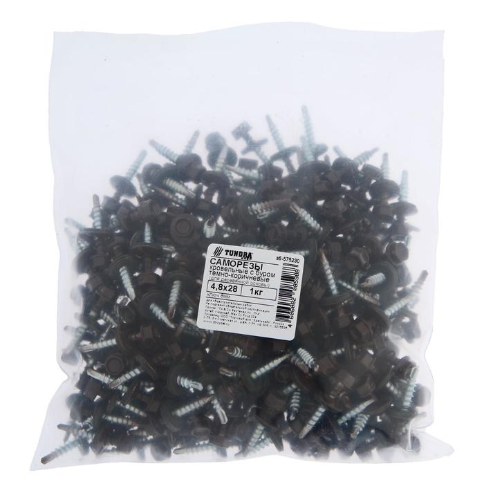 Саморезы кровельные ТУНДРА krep с буром 4.8x28 мм, темно-коричневый 1 кг