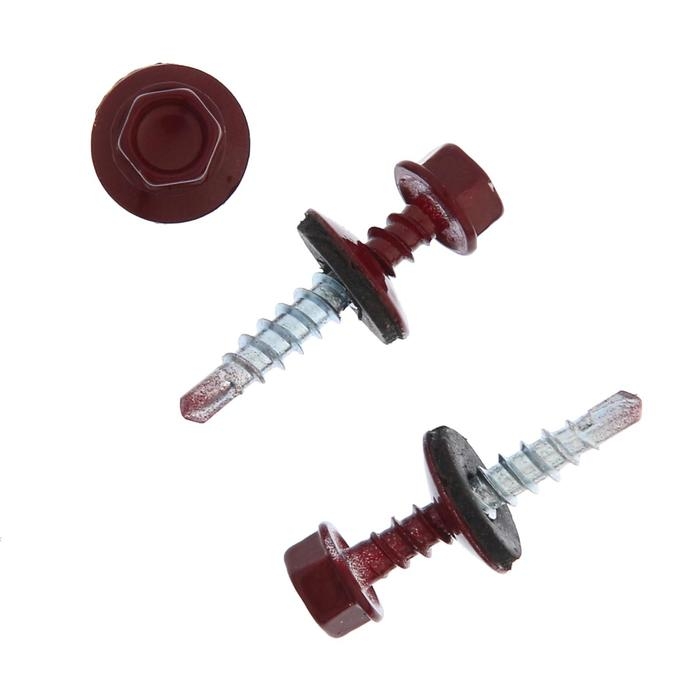 Саморезы кровельные ТУНДРА krep с буром 4.8x28 мм, темно-красный 300 шт.