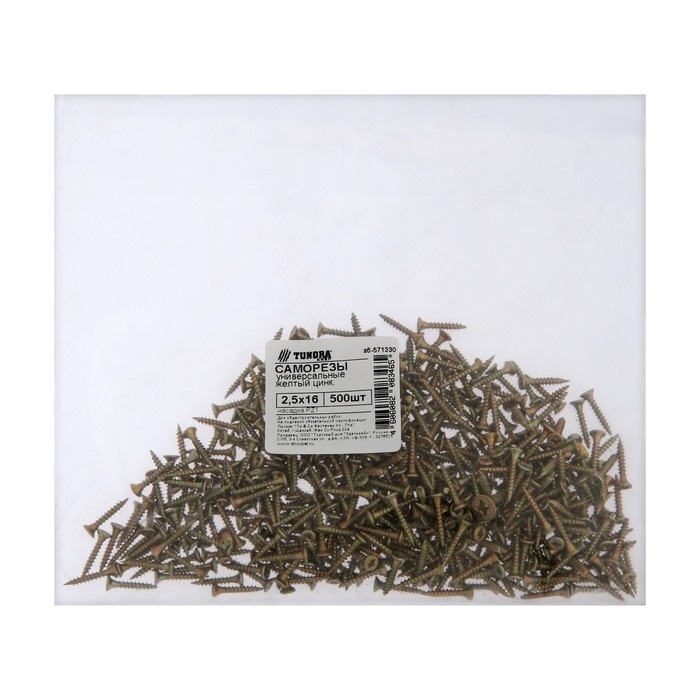 Саморезы универсальные ТУНДРА krep 2.5x16 мм, желтый цинк, 500 шт.