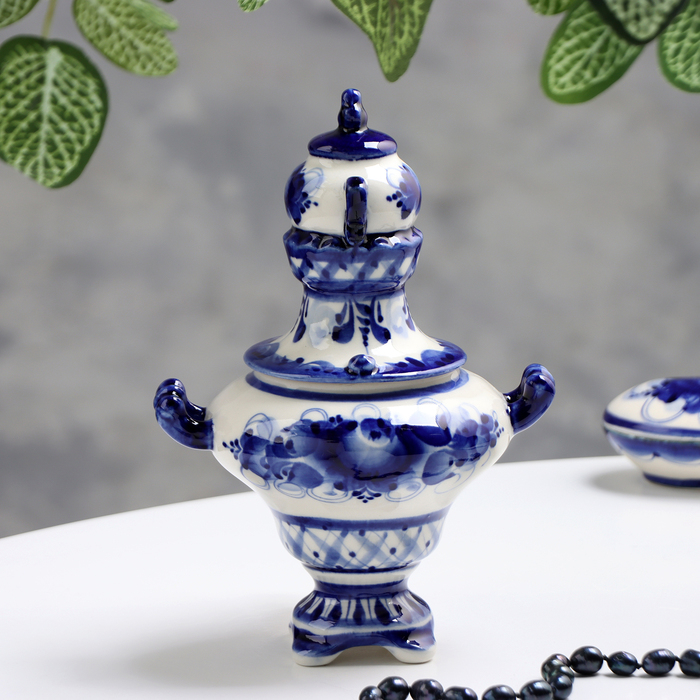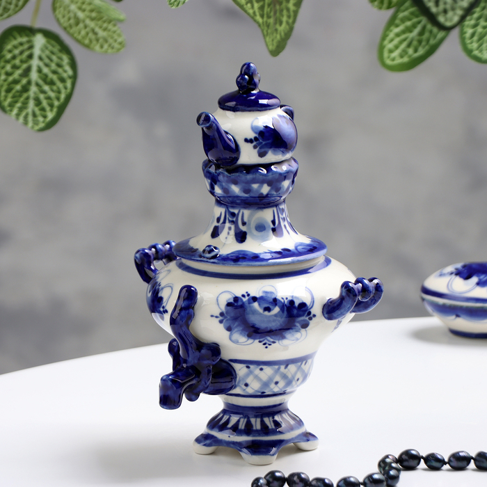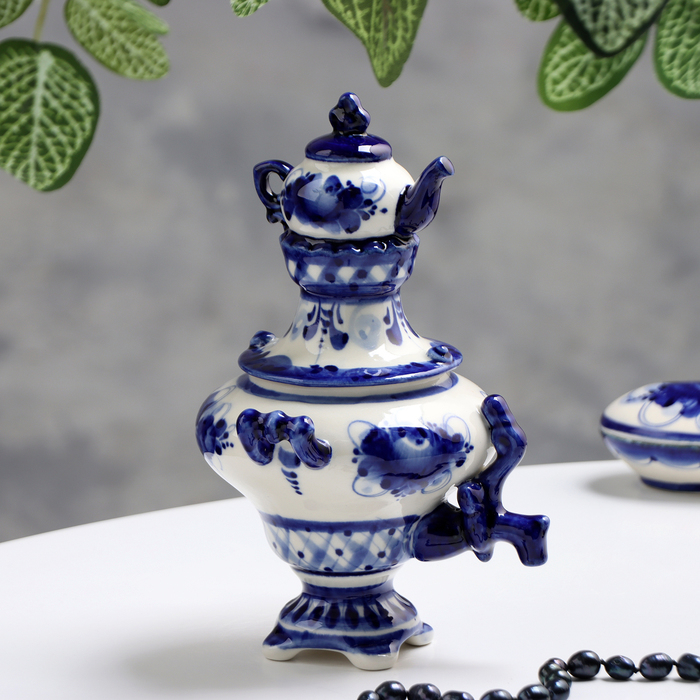 Самовар средний, гжель, фарфор, 18х11 см
