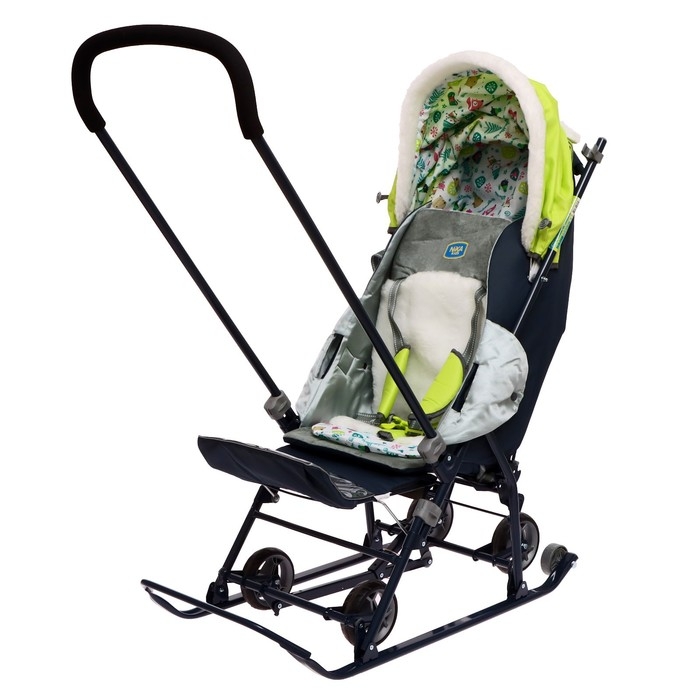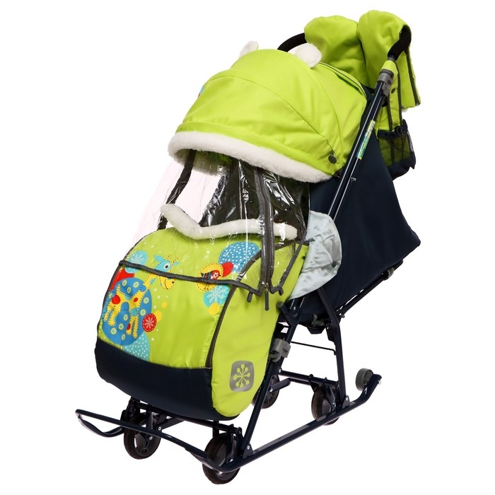 Санки-коляска «Наши детки 5-1» с жирафом, цвет лимонный