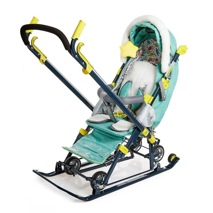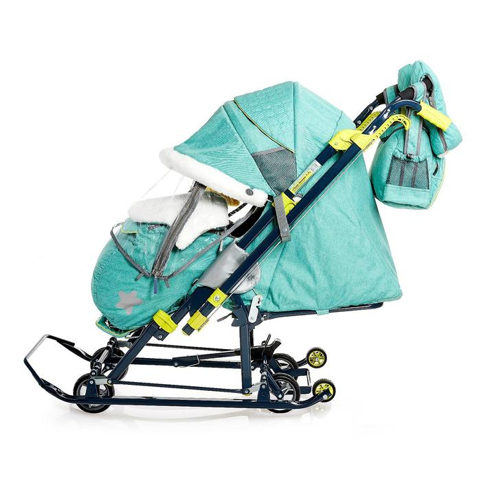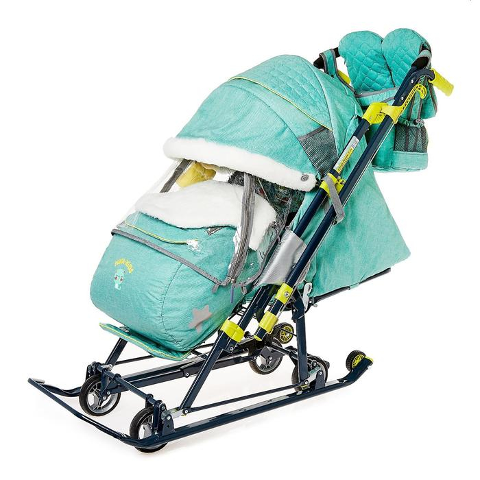 Санки-коляска «Ника Детям НД 7-7», дизайн в джинсовом стиле, цвет зелёный, с механизмом качания