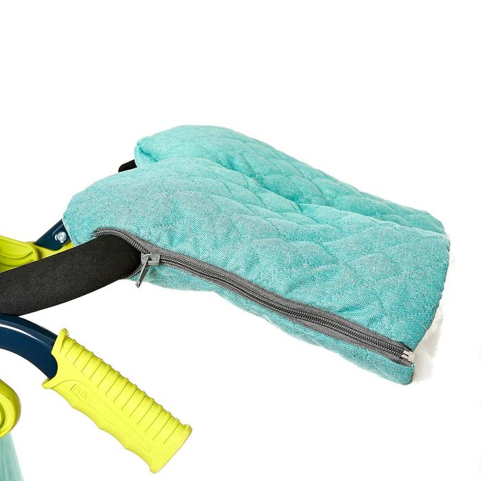 - съемный прозрачный тент от ветра и дождя с двумя молниями, крепится к чехлу коляски на пуговицу;