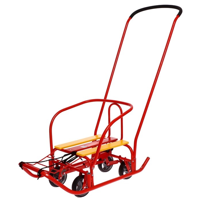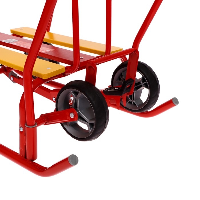 - Колёса и полозья позволяют свободно передвигать санки по любой дороге.