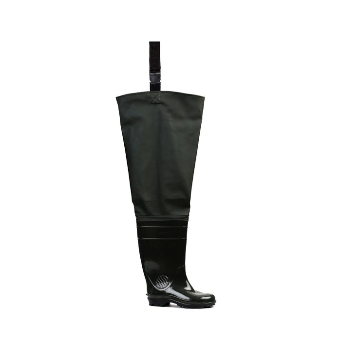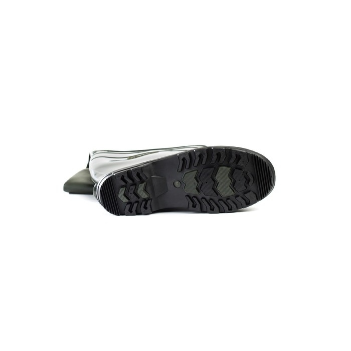 Изготовлены из ПВХ методом двухкомпонентного литья, что обеспечивает 100% защиту от влаги. Плотная подошва с ребристым протектором устойчива на скользком грунте. Усиленные стелька, носок и пятка защищают ноги от повреждений о камни и коряги. Благодаря лёгкости материала можно без устали передвигаться по берегу. А в воде сапоги практически невесомые.