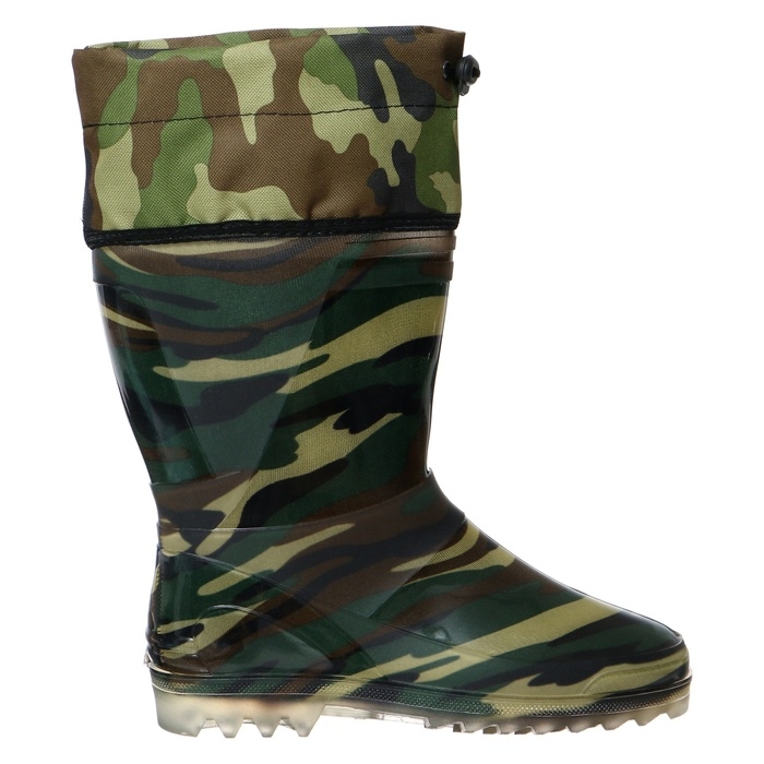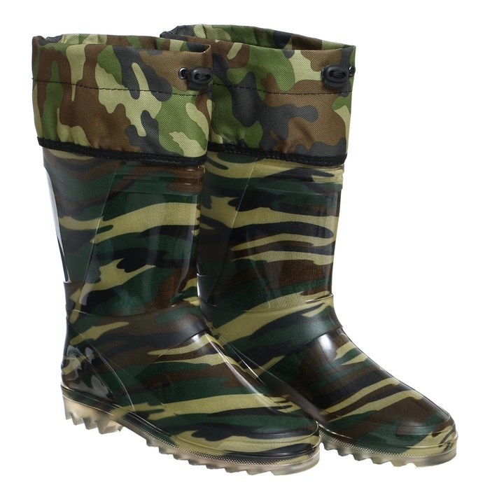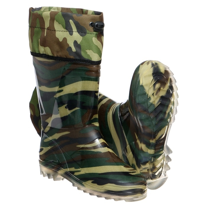 Сапоги мужские изготовлены из ПВХ и предназначены для защиты ног от промокания и загрязнений. Выполнены по технологии однокомпонентного литья методом горячего формования, внутри — тканевое покрытие. Протектор подошвы обладает противоскользящими свойствами. Сапоги удобны и практичны. Нижний температурный предел — -5ͦ. Имеется манжета (надставка) из водоотталкивающей ткани с фиксатором. Выполняется с использованием цветных текстильных чулок.
