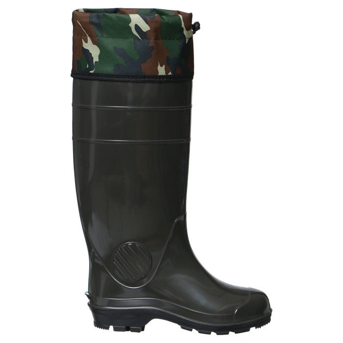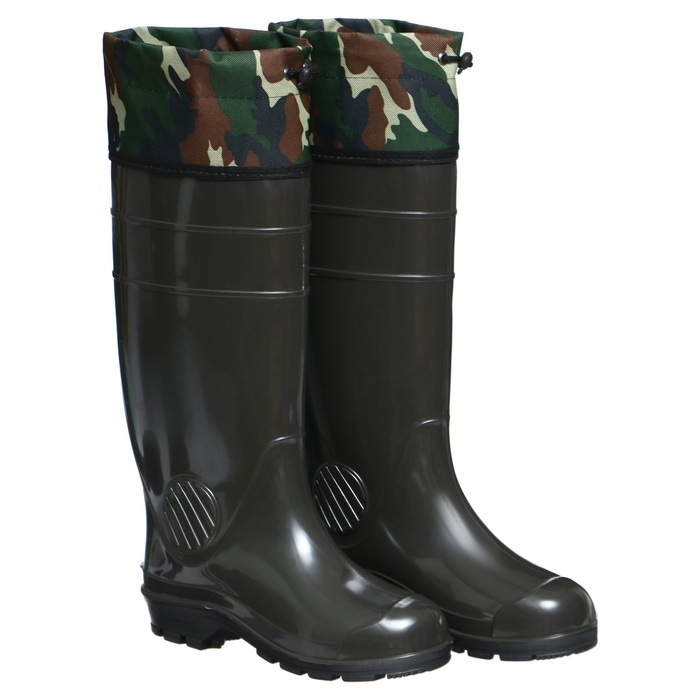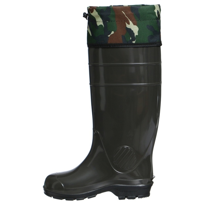 Сапоги мужские изготовлены из ПВХ и предназначены для защиты ног от промокания и загрязнений. Выполнены по технологии однокомпонентного литья методом горячего формования, внутри — тканевое покрытие. Протектор подошвы обладает противоскользящими свойствами. Сапоги удобны и практичны. Нижний температурный предел — -5ͦ. Имеется манжета (надставка) из водоотталкивающей ткани с фиксатором. Выполняется с использованием цветных текстильных чулок.