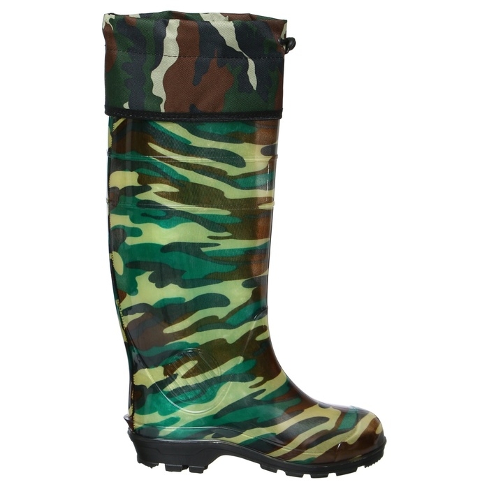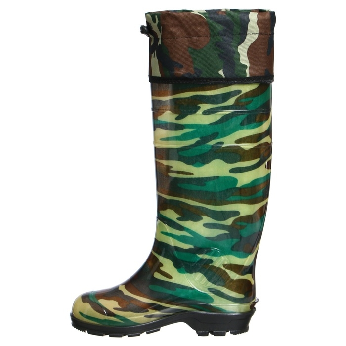 Сапоги мужские изготовлены из ПВХ и предназначены для защиты ног от промокания и загрязнений. Выполнены по технологии однокомпонентного литья методом горячего формования, внутри — тканевое покрытие. Протектор подошвы обладает противоскользящими свойствами. Сапоги удобны и практичны. Нижний температурный предел — -5ͦ. Имеется манжета (надставка) из водоотталкивающей ткани с фиксатором. Выполняется с использованием цветных текстильных чулок.