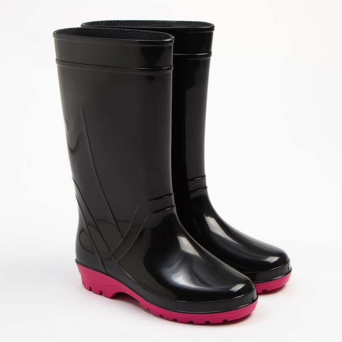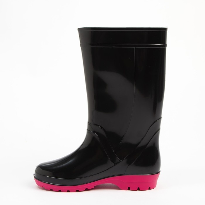 Сапоги резиновые женские, черный+розовый, размер 40