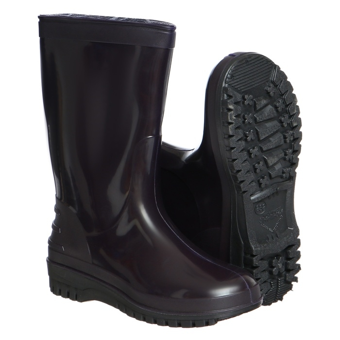 Сапоги женские изготовлены из ПВХ и предназначены для защиты ног от промокания и загрязнений. Выполнены по технологии двухкомпонентного литья методом горячего формования, внутри — тканевое покрытие. Протектор подошвы обладает противоскользящими свойствами. Сапоги из обладают повышенной износостойкостью, удобны и практичны.