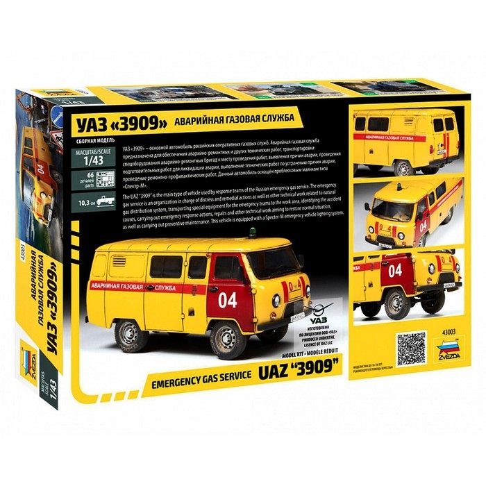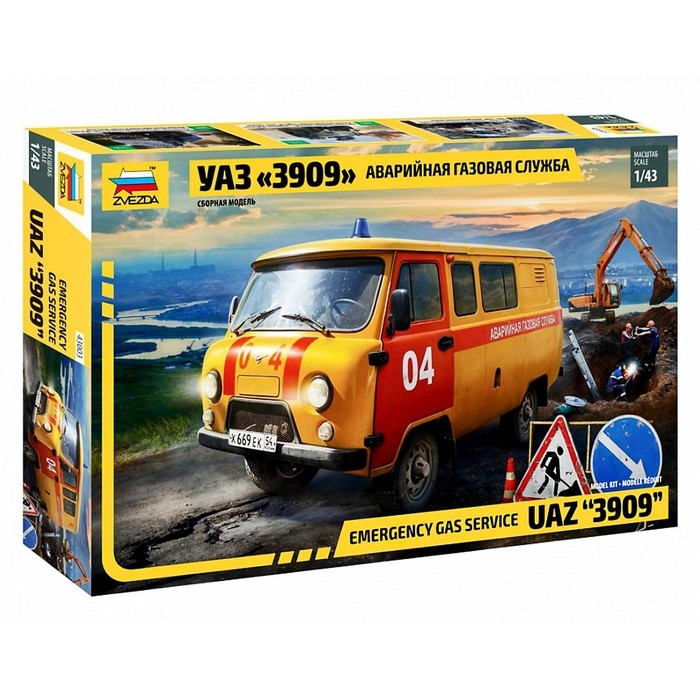 Сборная модель-автомобиль «УАЗ 3909 Аварийная газовая служба» Звезда, 1/43, (43003)