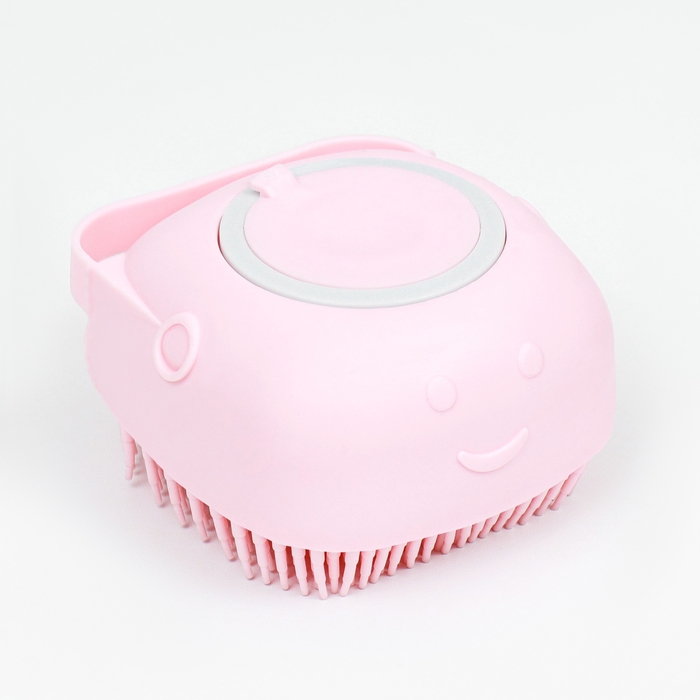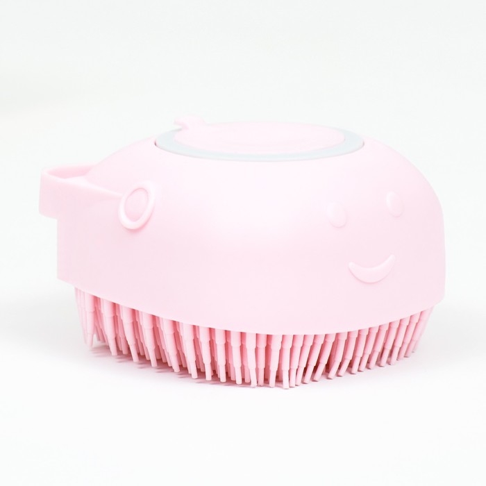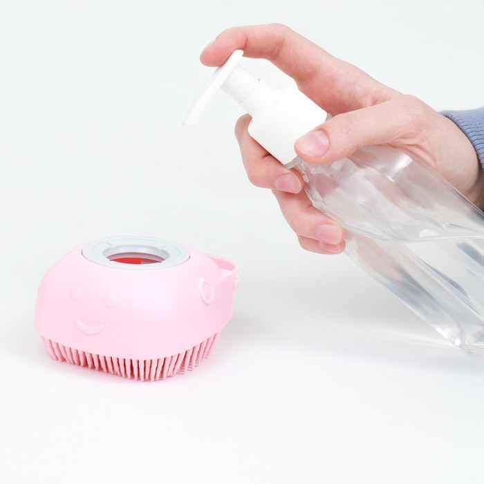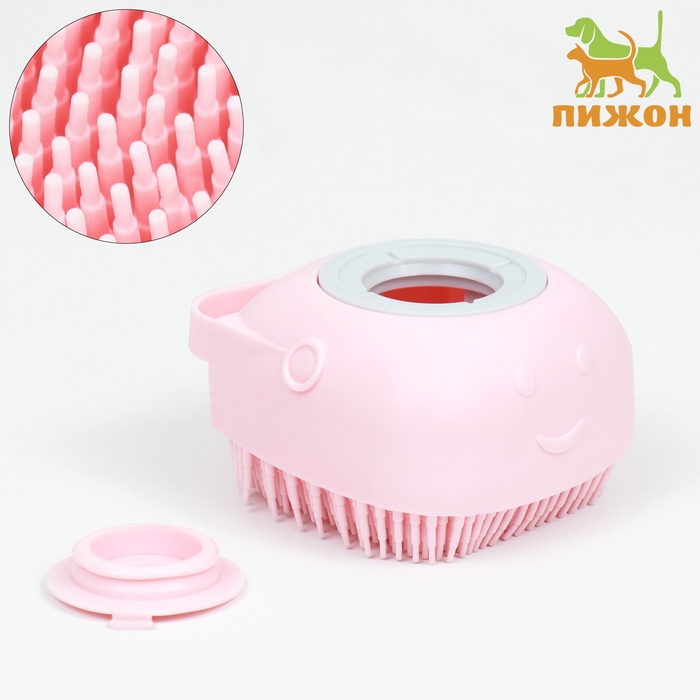 Щётка для мытья и массажа животных, с емкостью для шампуня, розовая